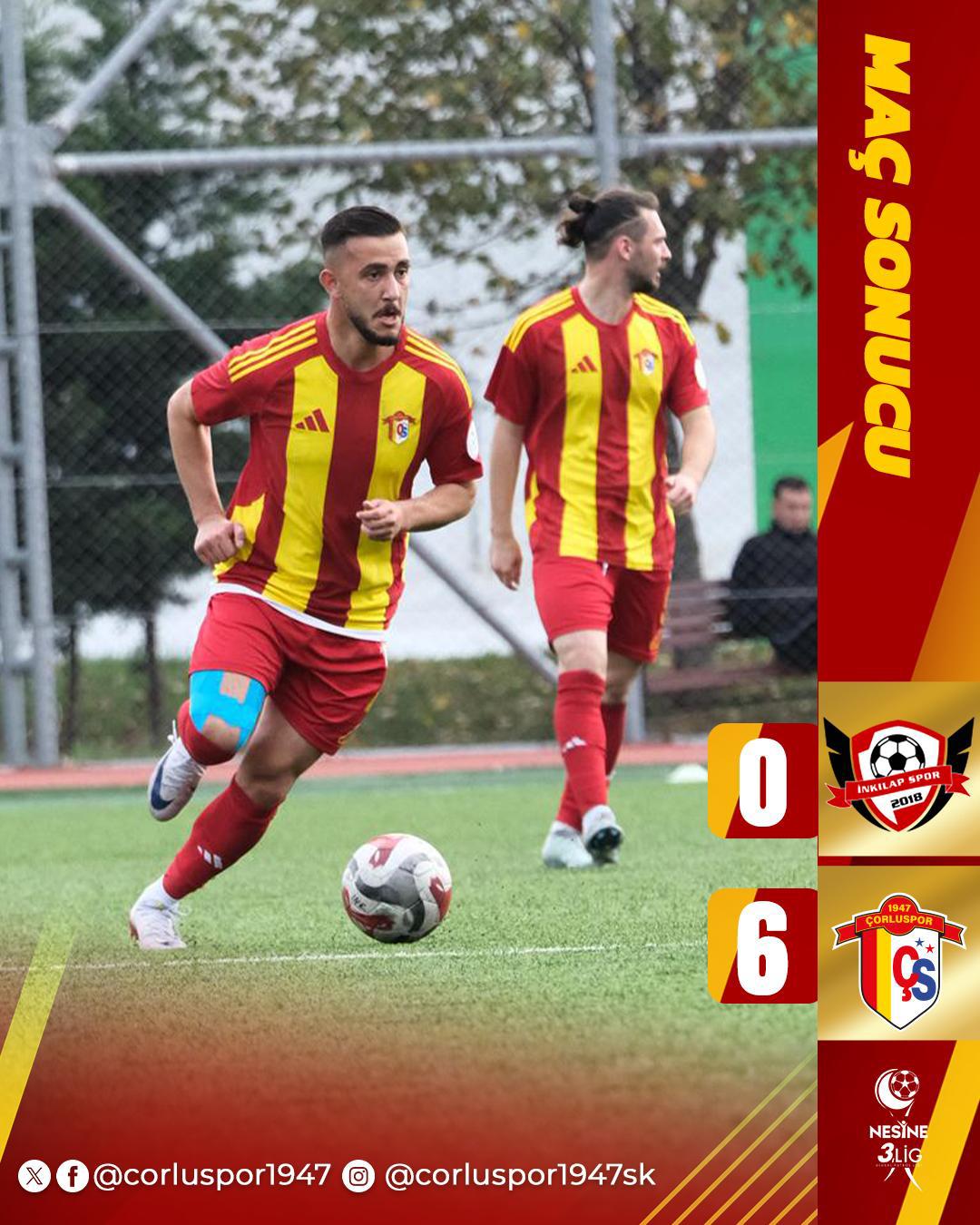 Silivri de oynana ve 6/0 gibi ezici bir galibiyet elde eden Çorlu Spor1947 yi taraftarı ve yönetimi yalnız bırakmadı.  Rakibi İnkılap Sporu 6/0 yenmenin verdiği mutluluğun yanında 25 yıl sonra yeni bir tarih yazmanın gururu içinde şampiyonluk hedefine ilerleyen Çorlu Spor1947, taraftarını her geçen gün daha da heyecanlandırırken, Yönetimin birlik ve beraberlik tablosu spor severlere ve takıma büyük bir güven sağlamaya devam ediyor. İnkılap spor maçı sonrasında Başkan Ahmet Bayram ve yönetimi futbolcular ve teknik heyetle soyunma odasında galibiyeti kutladı.