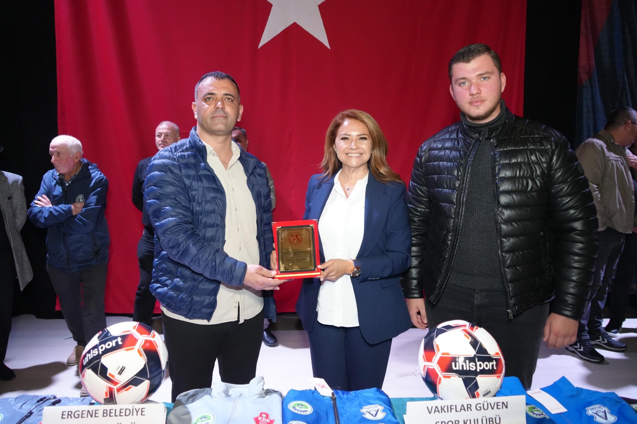 Düzenlenen programda Kulüp Başkan ve yöneticileri, Ergene Belediyesi Başkanı Müge Yıldız Topak’a takımlarına vermiş oldukları maddi manevi desteklerden dolayı teşekkür plaketi ve forma hediye etti.