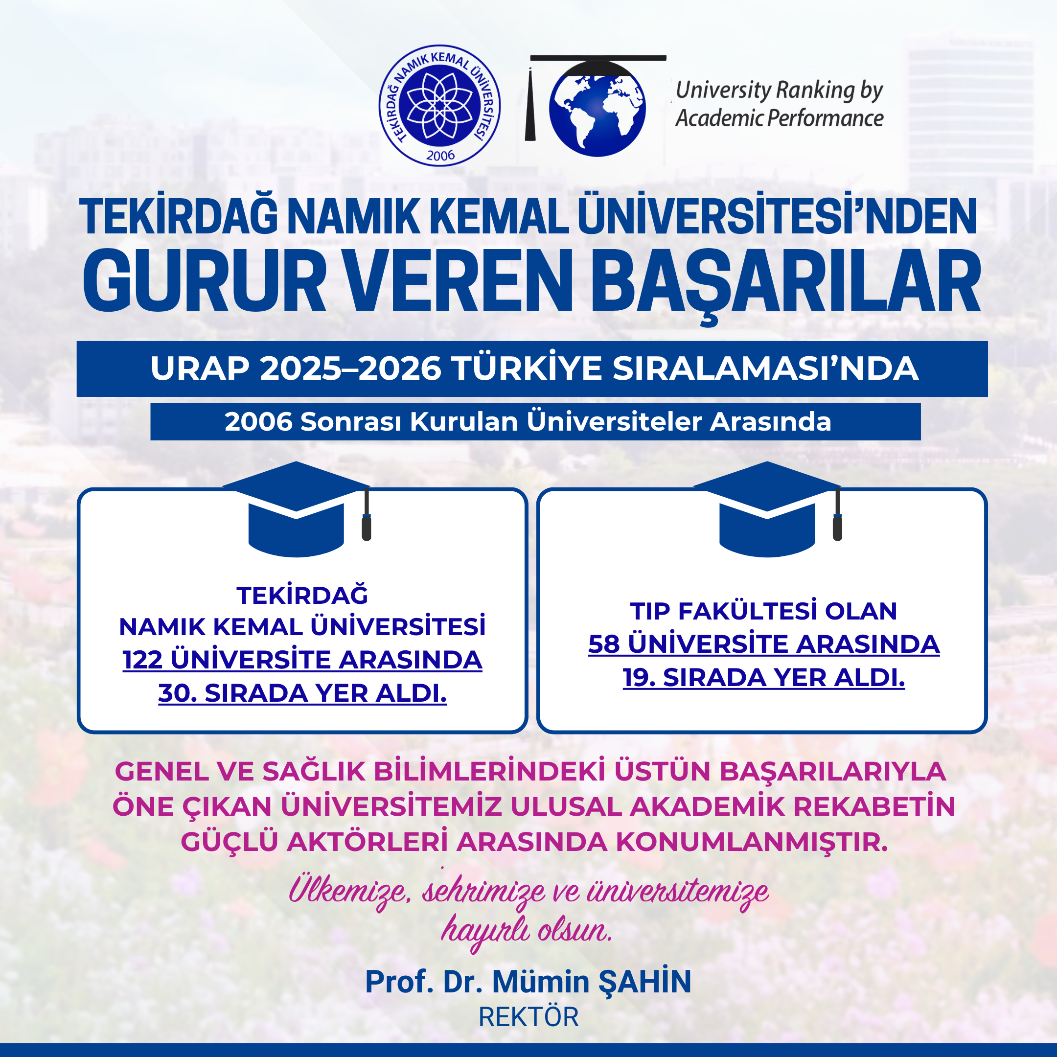 REKTÖR ŞAHİN: “BU BAŞARI NİTELİKLİ EĞİTİM, BİLİMSEL ÜRETİM VE İNOVASYONA YAPTIĞIMIZ KARARLI YATIRIMLARIN SOMUT KARŞILIĞIDIR”