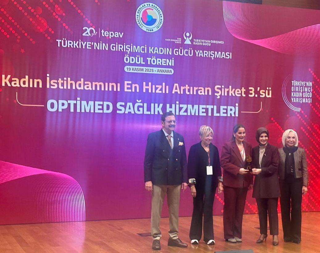 Optimed Sağlık Grubu, kadın çalışan oranındaki artış, oluşturduğu kapsayıcı çalışma kültürü ve kadınların kariyer gelişimine yönelik sunduğu fırsatlarla kısa listeye kalmayı başararak Türkiye üçüncülüğüne layık görüldü. Ödül töreni, Aile ve Sosyal Hizmetler Bakanı Mahinur Özdemir Göktaş, TOBB Başkanı M. RifatHisarcıklıoğlu ve TOBB Kadın Girişimciler Kurulu Başkanı Nurten Öztürk’ün katılımlarıyla 19 Kasım 2025 tarihinde TOBB Konferans Salonu’nda gerçekleştirildi. Optimed Sağlık Grubu ödülünü, üst düzey katılımcıların yer aldığı törende teslim aldı.