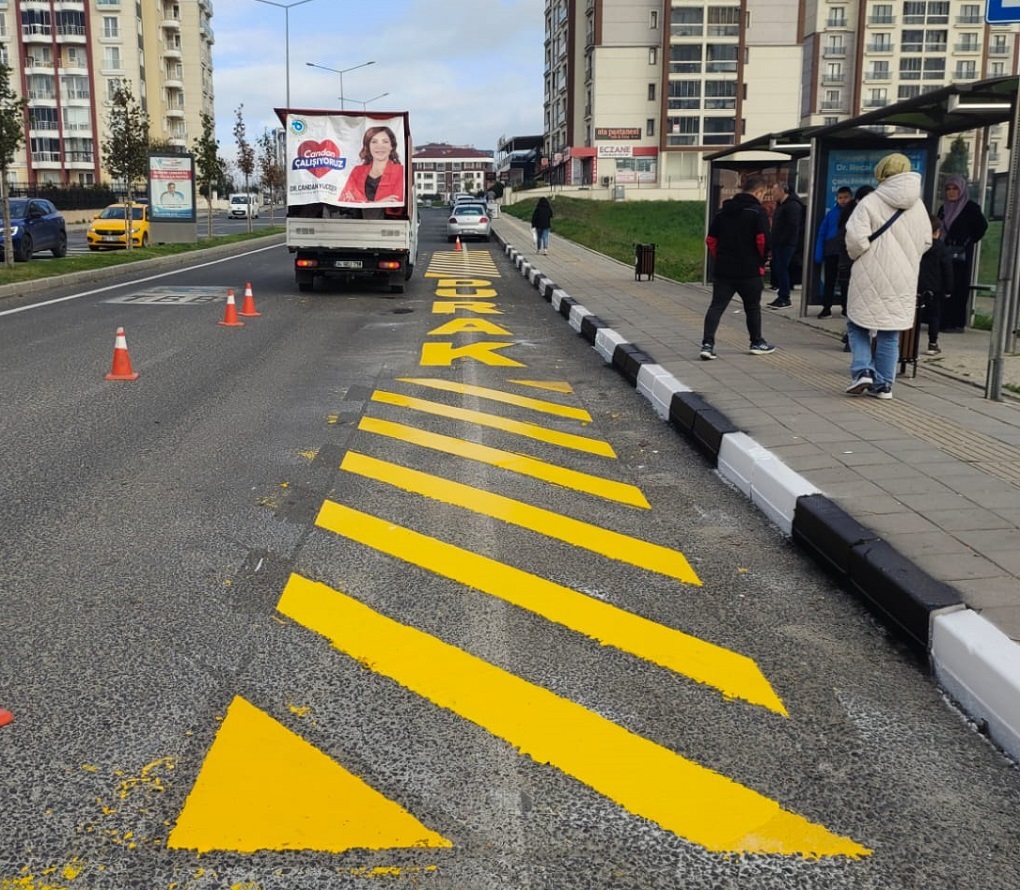 Toplu taşıma araçlarının durak noktalarında yaşanan karışıklıkların önüne geçmek amacıyla, durak yerleri belirgin yatay işaretlemelerle yeniden düzenleniyor. Bu uygulama sayesinde hem sürücüler hem de yolcular için durak noktaları daha görünür hale gelirken, durak dışı indirme-bindirme gibi trafik akışını bozan davranışların da önüne geçiliyor.