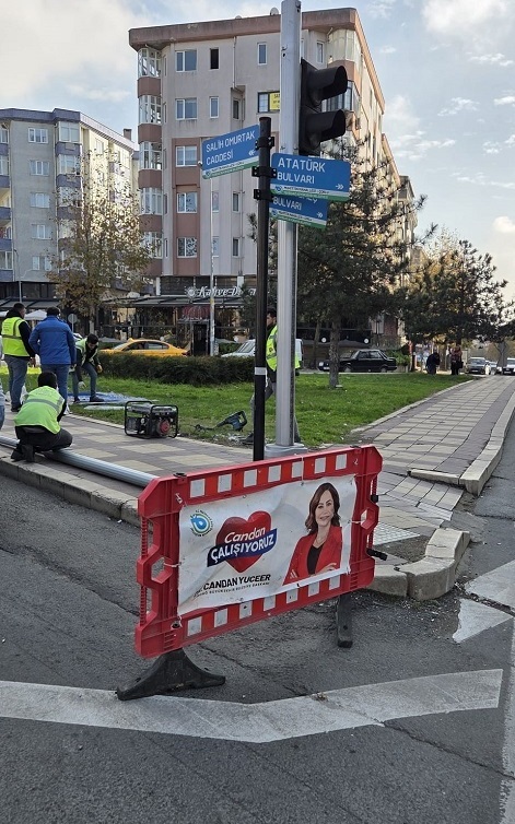 Dönel kavşaklarda sürücülerin yön bulmalarını kolaylaştırmak ve çarpışma riskini azaltmak amacıyla hem yatay (zemin) hem de düşey (levha) işaretlemeler yenileniyor. Bu işaretlemeler, kavşak içi geçiş önceliklerini netleştirerek trafik akışını daha güvenli hale getiriyor.