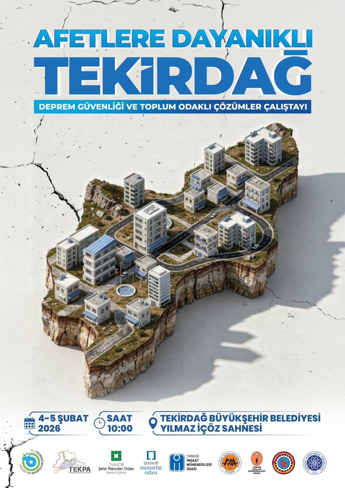 Deprem bölgesinde bulunan, Tekirdağ için hayati öneme sahip DEPREM GÜVENLİĞİ VE TOPLUM ODAKLI ÇÖZÜMLER ÇALIŞTAYI, 4 – 5 Şubat tarihleri arasında yapılacak.