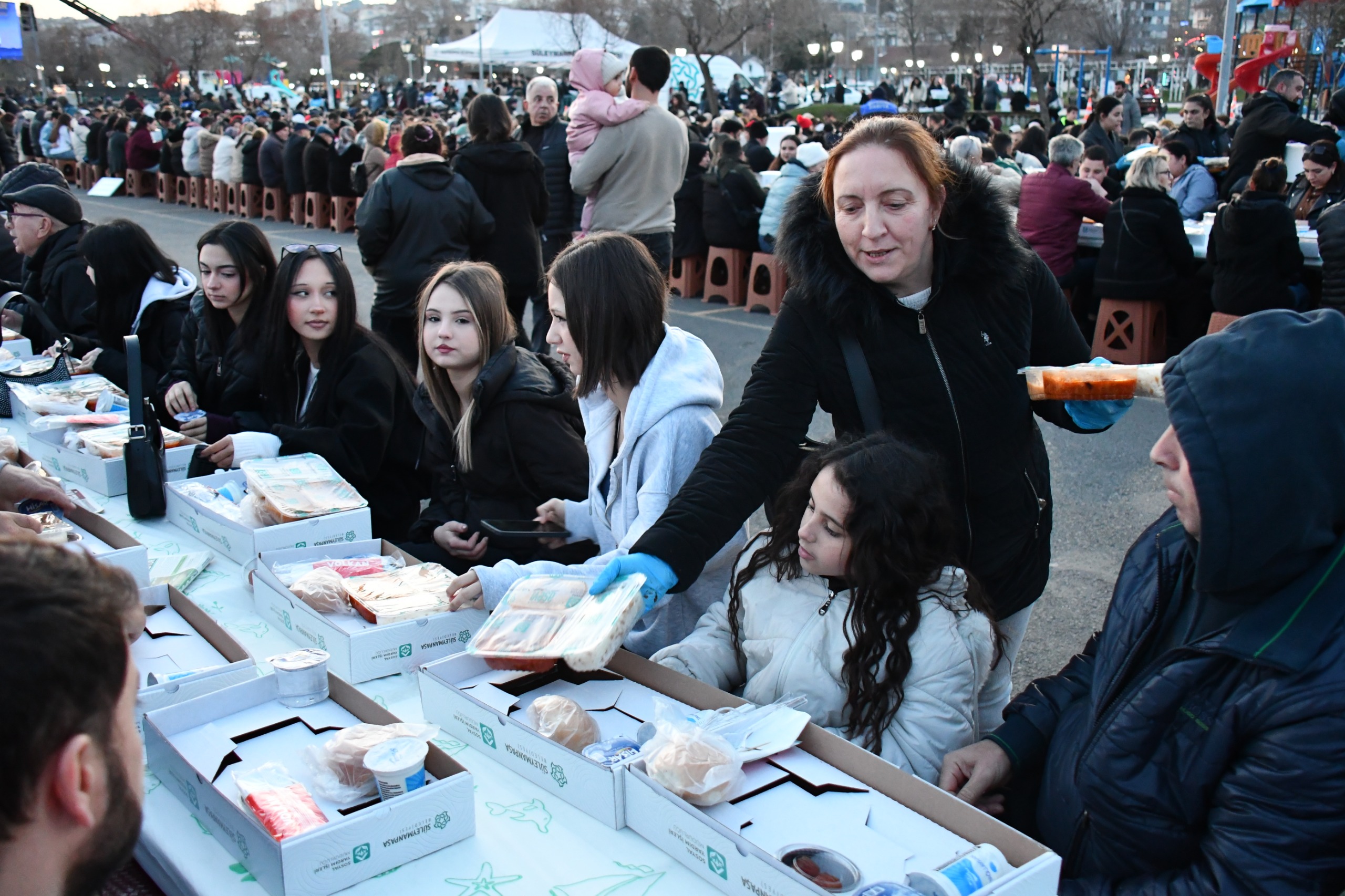 Alanı hınca hınç dolduran binlerce vatandaş, akşam ezanının okunmasıyla birlikte ellerini semaya açarak dualar etti. Süleymanpaşa Belediyesi Aşevi tarafından özenle hazırlanan 4 çeşit sıcak yemekle oruçlarını açan Süleymanpaşalılar, Ramazan ayının bereketini hep birlikte aynı sofrada paylaşmanın mutluluğunu yaşadı.