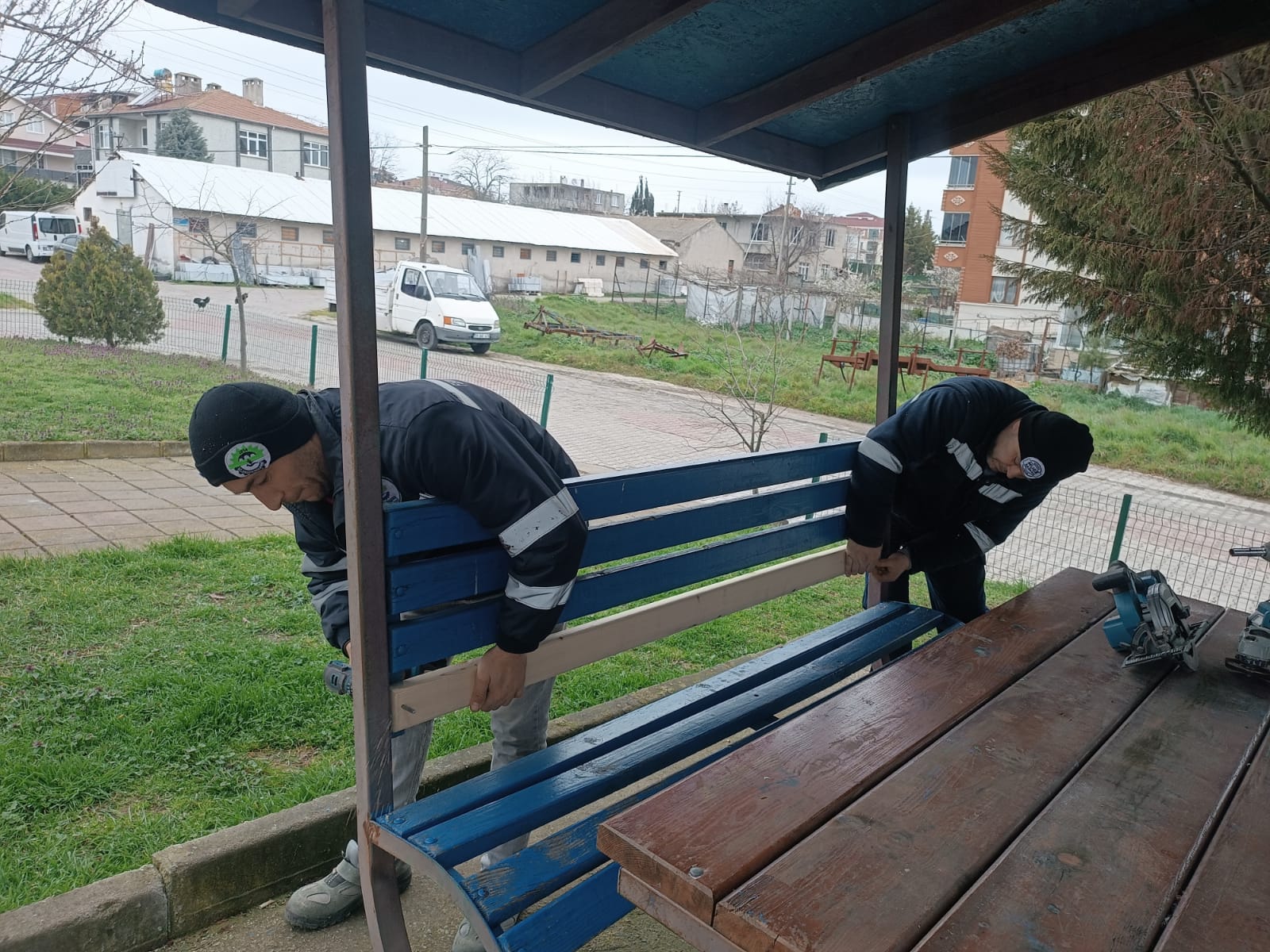 Yaz ayı öncesinde Ergene Belediyesi Park ve Bahçeler Müdürlüğü ekipleri ile belediye bünyesinde faaliyet gösteren marangozhanede yürütülen çalışmalar kapsamında park oturma grupları, banklar, kamelyalar ve çocuk oyun alanlarında kullanılan ahşap ekipmanların yenilenme çalışması tamamlandı. Ekipler bir yandan parkların zemin ve oyun gruplarında bakım çalışmaları yaparken, diğer yandan park aydınlatmalarını da yenileyerek alanların daha güvenli ve kullanışlı hale gelmesini sağladı. Özellikle akşam saatlerinde vatandaşların rahat ve güvenli bir şekilde vakit geçirebilmesi için aydınlatma sistemleri gözden geçirilip eksikler giderildi.