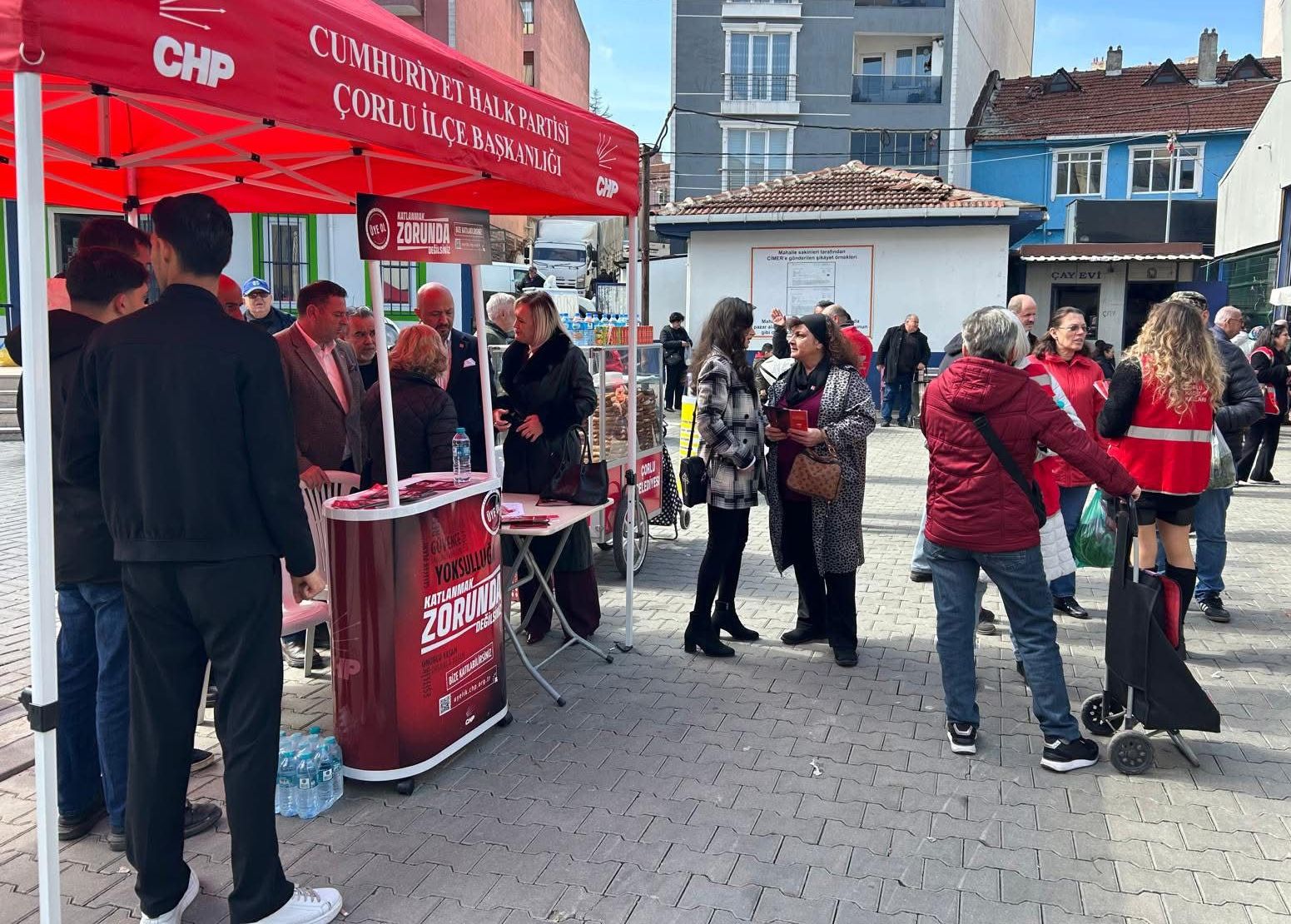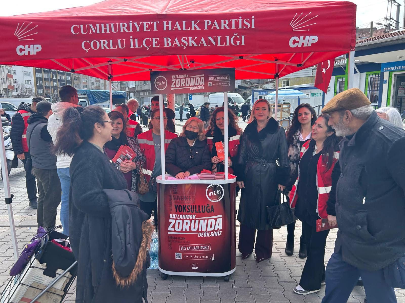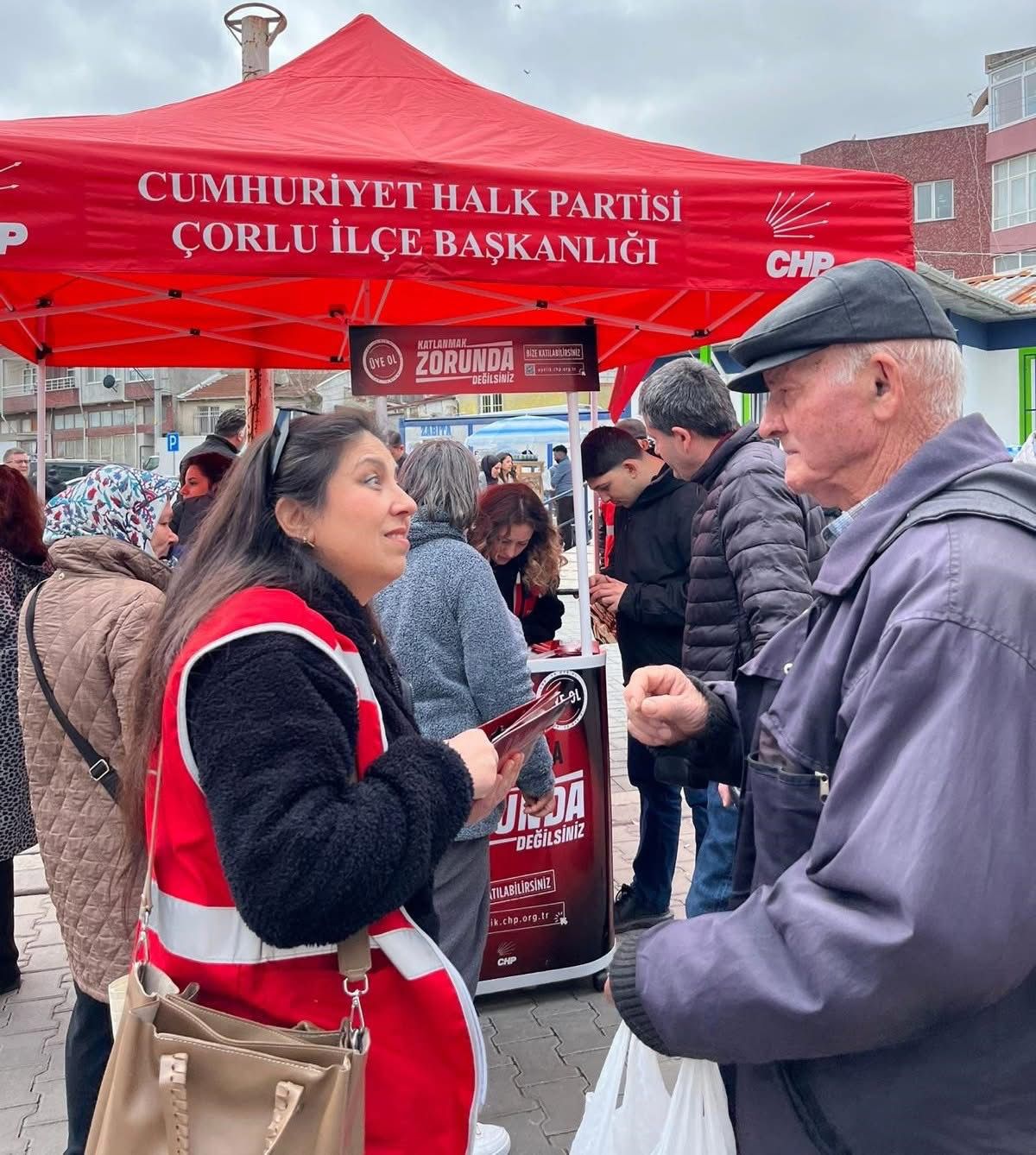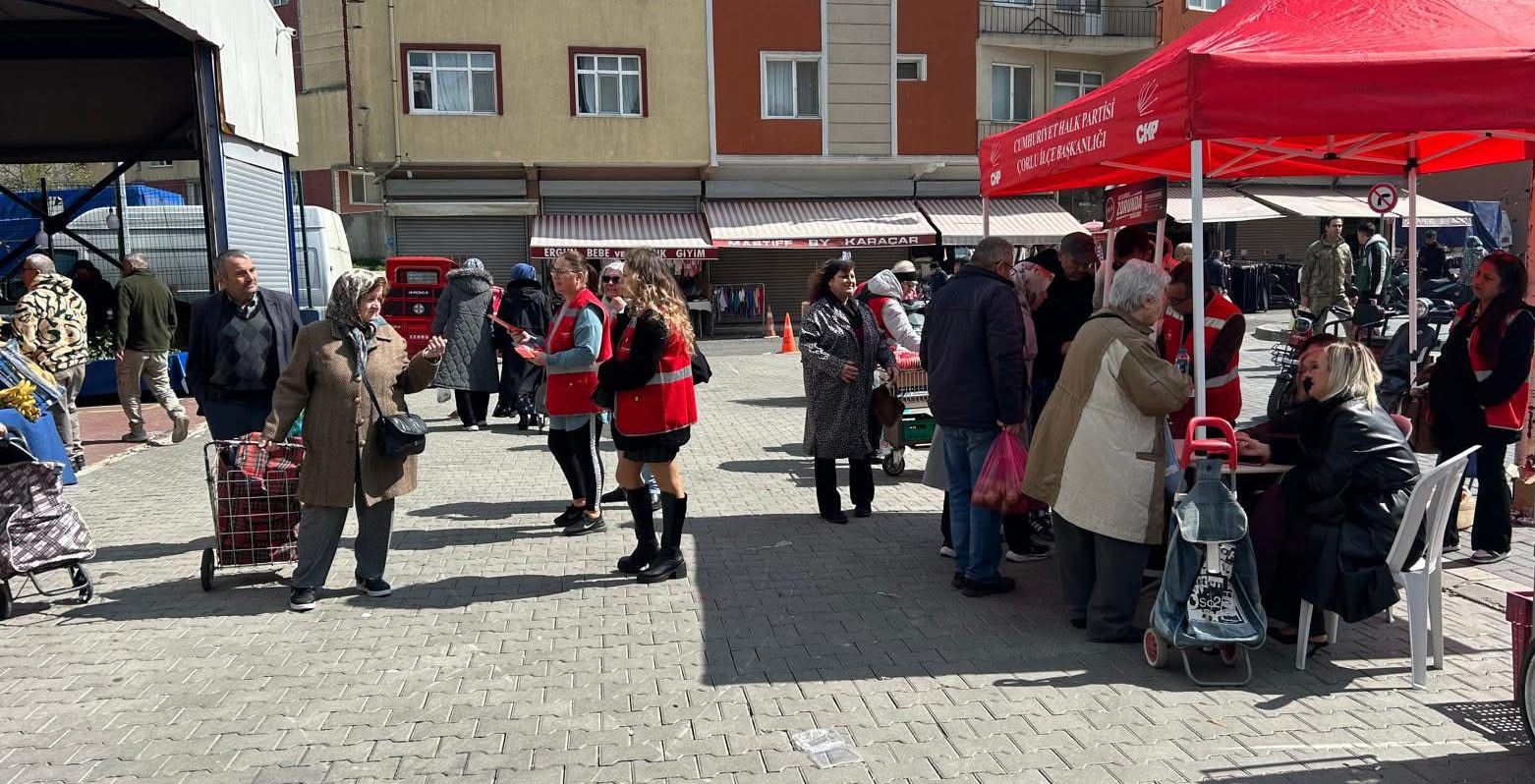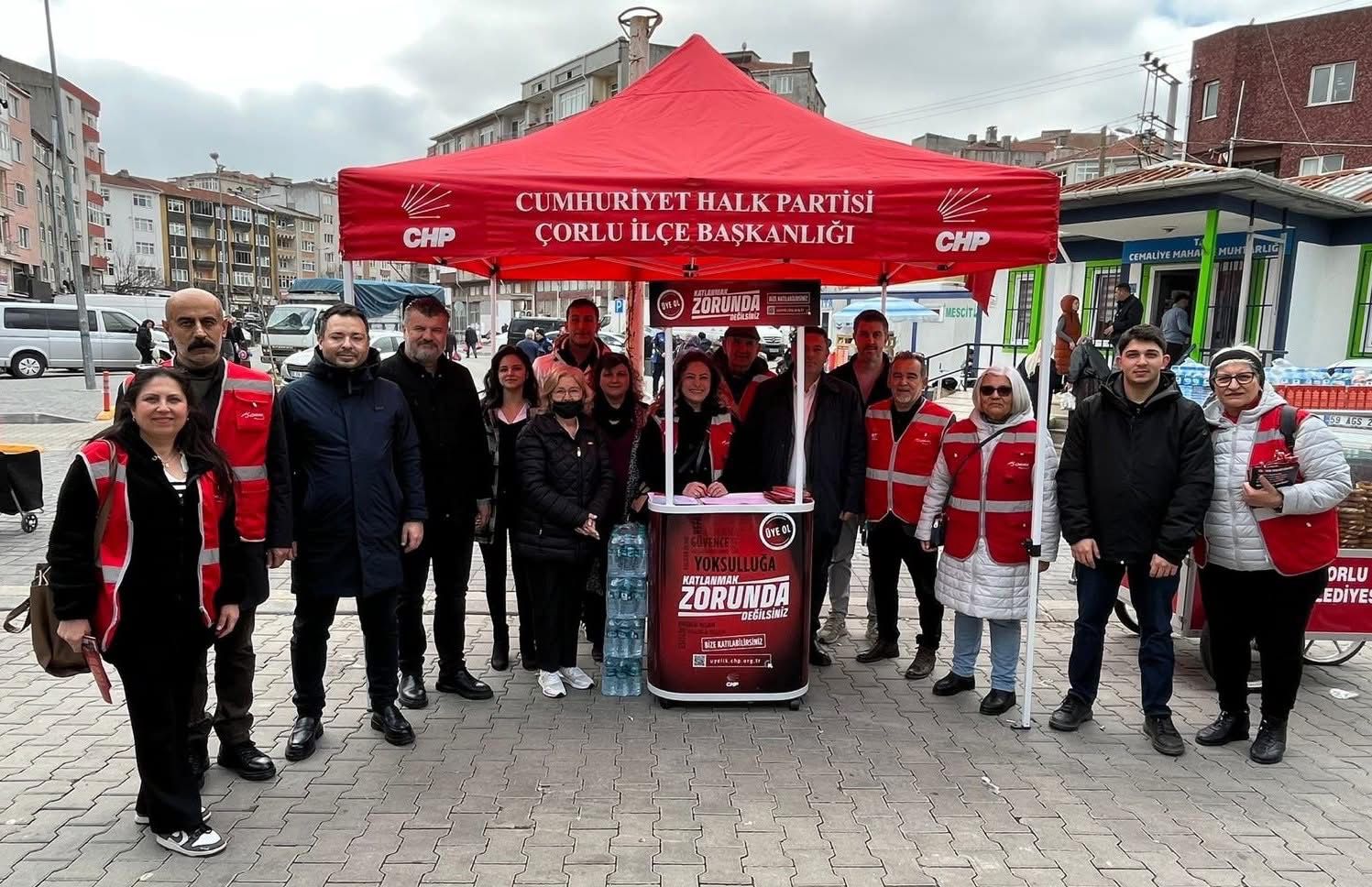 Saha çalışmalarına devam eden, Cumhuriyet Halk Partisi Çorlu İlçe Başkanı Mert Yılmaz konuyla ilgili yaptığı açıklamada; “ #KatlanmakZorundaDeğilsiniz diyerek başlattığımız yeni üye kampanyamız kapsamında bugün Perşembe pazarında halkımızla bir araya geldik. İl Başkanımız Sayın Cenk Boduç, İl Yönetim Kurulu üyelerimiz, Meclis Üyelerimiz ve İl Gençlik Kolları Başkanımız Sayın Cenk Işıksel ile birlikte pazar esnafımızın ve vatandaşlarımızın yaşadığı ekonomik zorlukları yerinde dinledik. Her geçen gün ağırlaşan hayat şartları karşısında halkımızın yalnız olmadığını bir kez daha vurguladık.