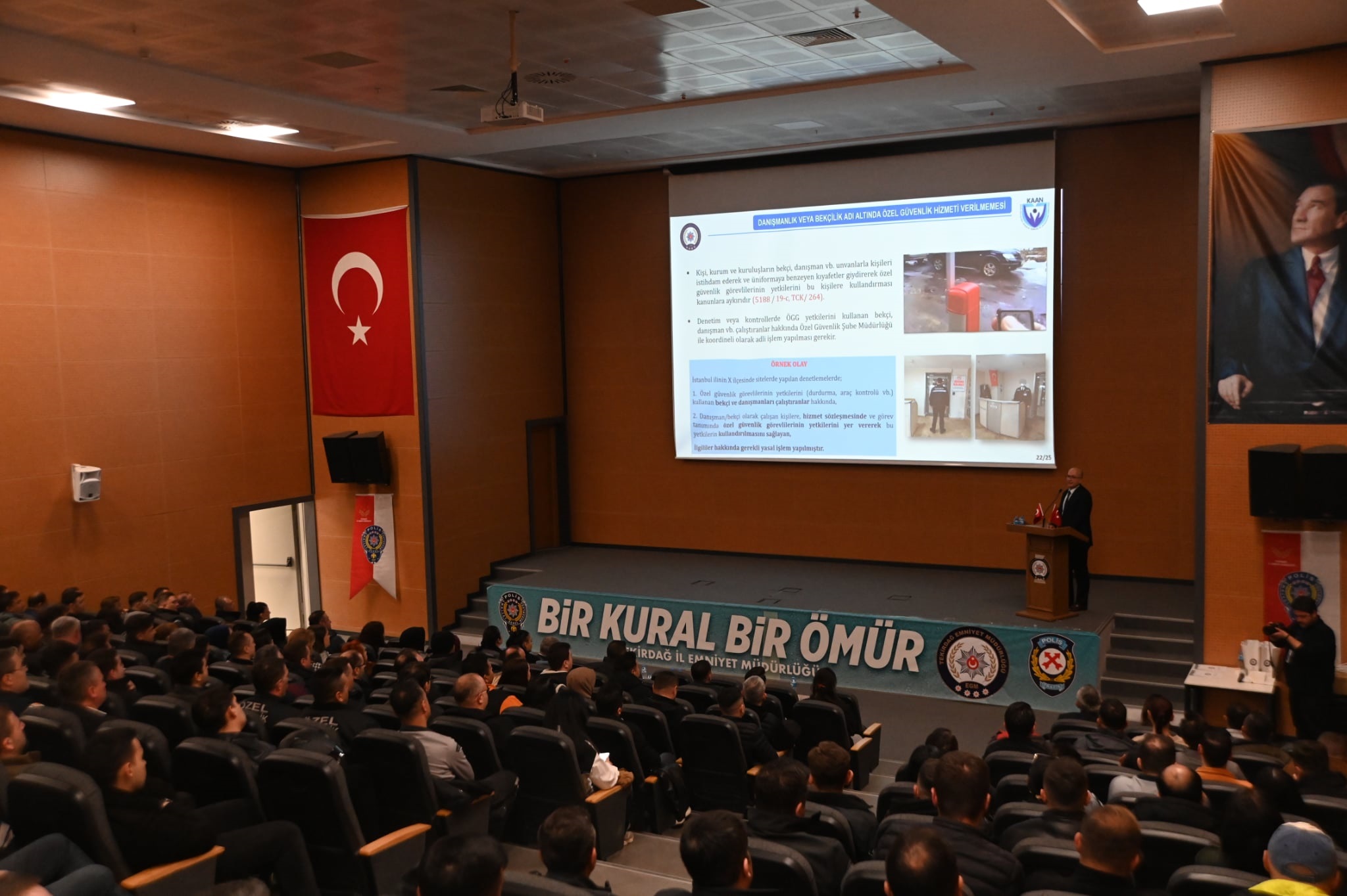Tekirdağ İl Emniyet Müdürlüğü, il genelinde görev yapan kamu ve özel güvenlik personeline yönelik bir konferans düzenledi. Konferansın ardından, Süleymanpaşa Otogarı’nda uyuşturucu sevkiyatını engelleyerek büyük bir başarıya imza atan güvenlik personeline plaketleri takdim edildi.