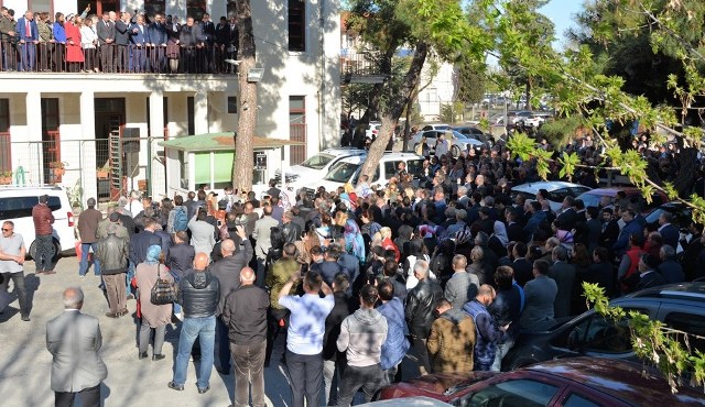 belediye binasy önünde toplanarak kendisini tebrik etmeye gelen yüzlerce