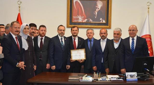 birlikte mazbatasyny aldy. Ba?kan Yüksel ile hatyra foto?rafy çektirdi.