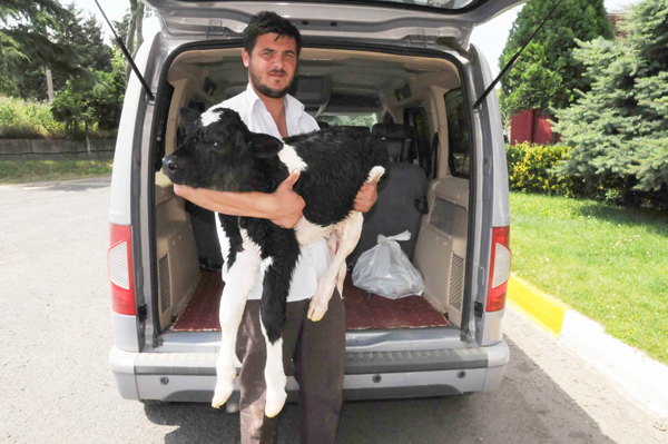 buzağı alındı ve hayata döndürüldü. “Öksüz” adı verilen erkek buzağı sahibine